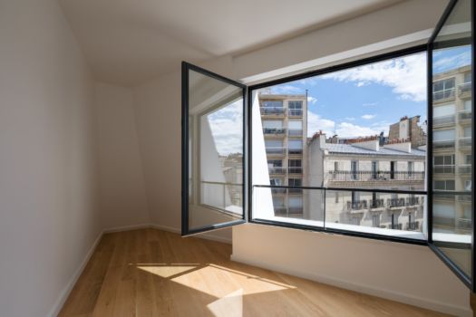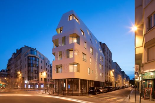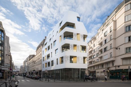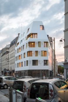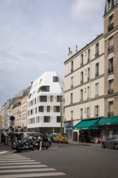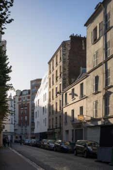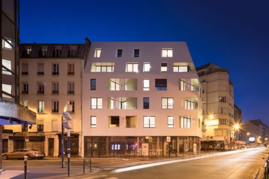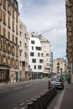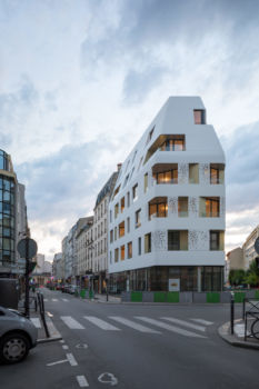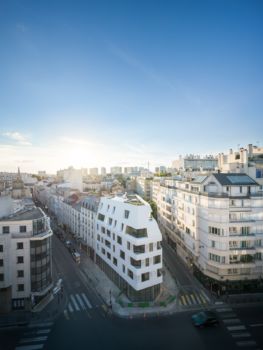 Cet immeuble de 10 logements sociaux rue de la Croix-Nivert occupe une position singulière sur un carrefour. Il termine l’îlot et joue le rôle de l’articulation, avec ses angles arrondis et son attique qui se plie, s’adaptant à son contexte.