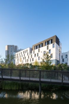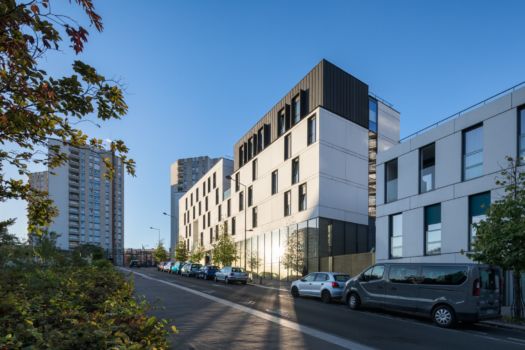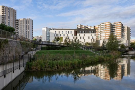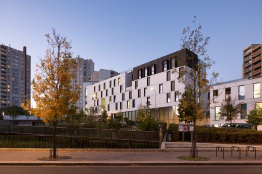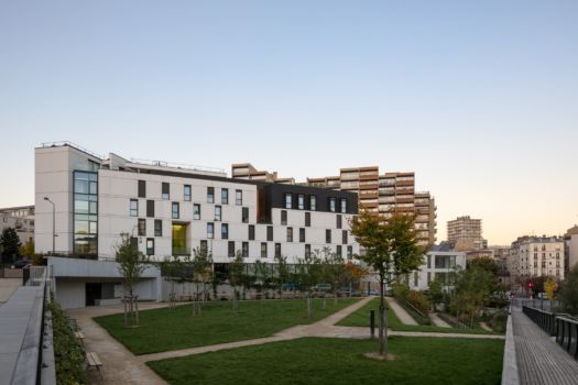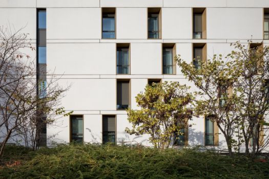 L’EHPAD Annie Giradot joue le rôle d’une pierre angulaire dans la ZAC de Rungis. Elle articule les différents éléments qui la bordent en adaptant sa volumétrie. Les photographies racontent avant tout l’histoire de cette relation, avec son contexte, avec la topographie et le jardin Charles Trenet.