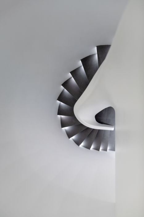 - L’escalier incroyable qui tourne et conduit à l’étage du haut